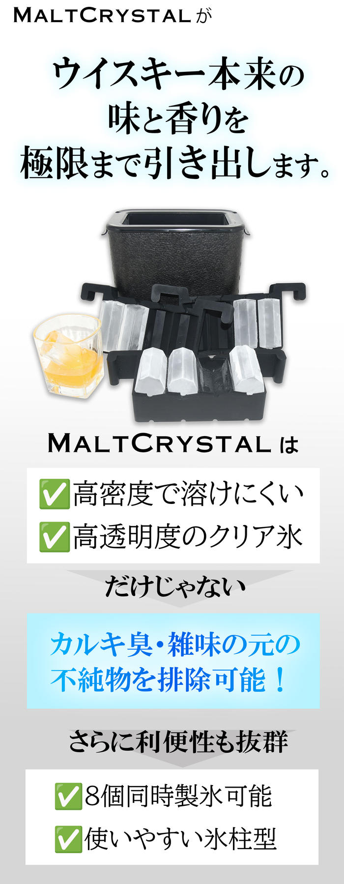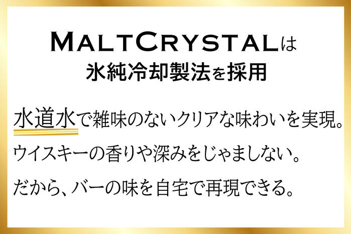 あなたのグラスに、氷の新常識を。MALT CRYSTAL(モルトクリスタル)が、家庭での特別な時間を変えていきます。 -