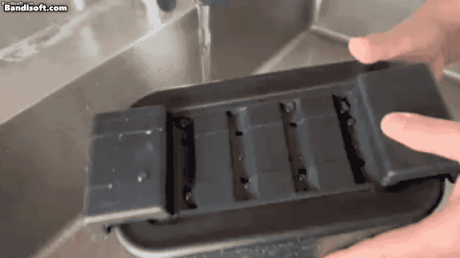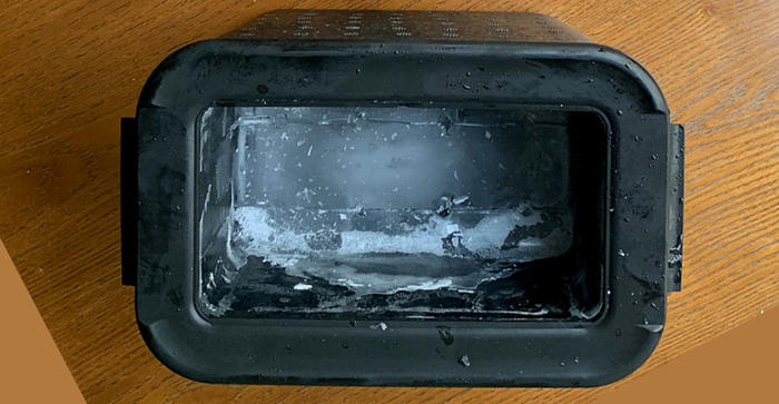 - モールド内で生成された8個の透明氷とは別に、カルキや雑味の元となる成分は、箱の底に白く固まって現れます。これが、不要な成分がしっかりと排出された証です。
