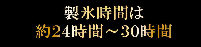 - A. 一般的な冷凍庫(-10℃〜-18℃)で約24〜30時間です。冷凍庫の設定が弱めの場合は時間がかかりますが、その分、より透明度の高い氷に仕上がります。